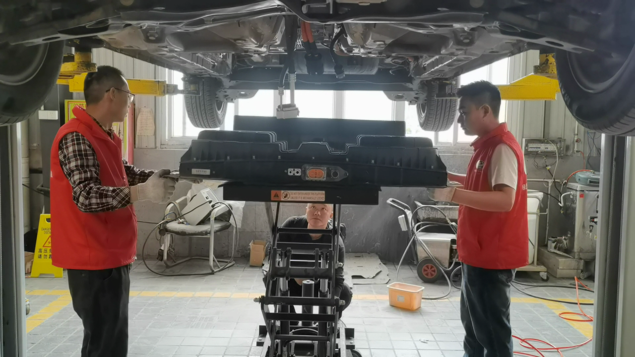 以下以吉利新能源车的动力电池拆卸和安装为例。
